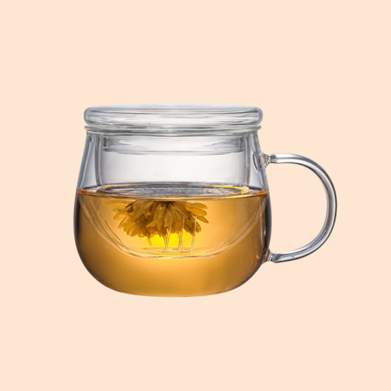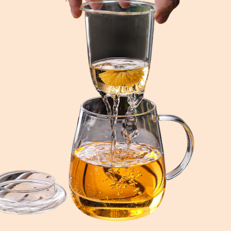 투명한 유리 찻잔, 꽃 디자인으로 고급스러운 분위기 연출, 내열 유리로 안전한 사용, 선물용 및 홈카페에 적합